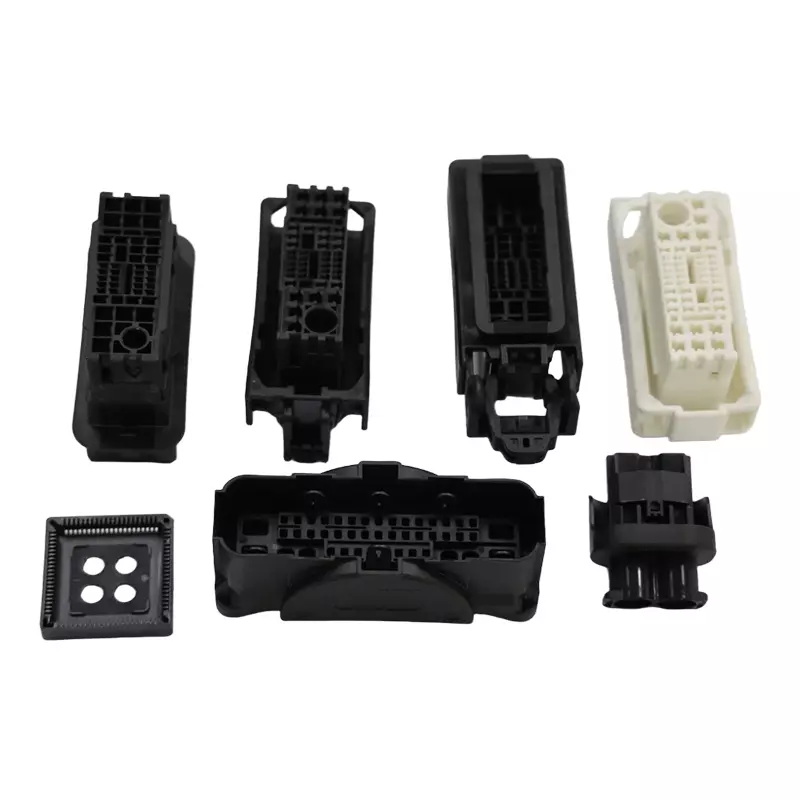 Automotive parts: interior parts, lamp lenses, connectors, sensor housings.